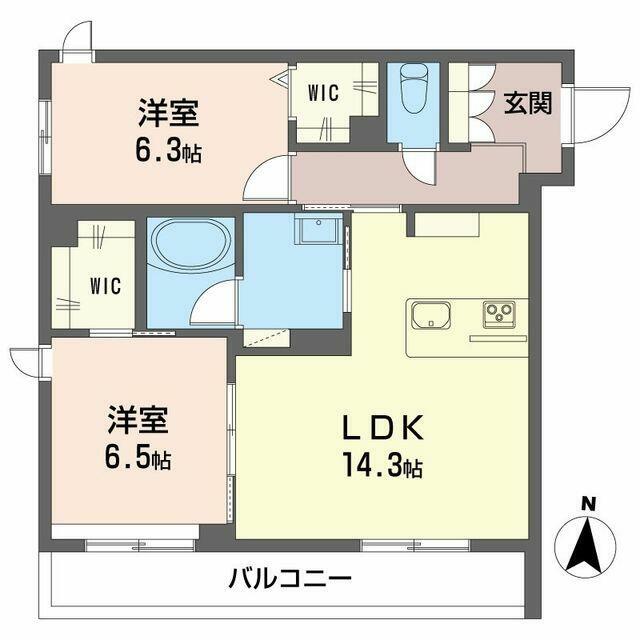 | 間取り | 2LDK(LDK14.3帖 洋室6.5帖 洋室6.3帖) | 主要採光面 | 南 |